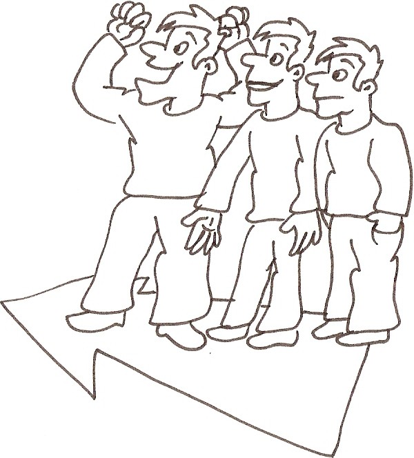 Die Mitspieler sollen sich der Reihe nach aufstellen.