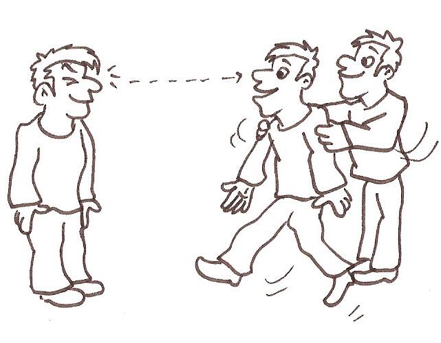 Ein Mitspieler steht allein im Kreis und blinzelt einem anderen vorne stehenden zu. Dieser muss nun so schnell wie möglich zu dem Blinzler rennen und sich hinter diesen stellen. Der hintere Mitspieler muss jedoch versuchen, dies zu verhindern, indem er schnell die Hände nach vorne nimmt und seinen Partner an den Schulter festhält. Schafft er dies nicht, wird erder neue Blinzler.