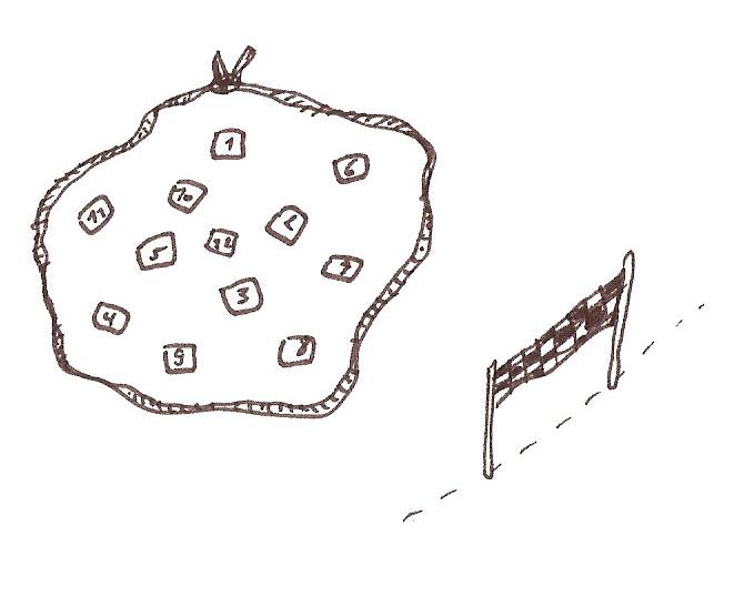 (Durchmesser: mehrere Meter) nummerierte Karten (1-30) in
