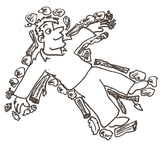 Ein Mitspieler legt sich auf den Waldboden (evtl. Decke darunter legen).