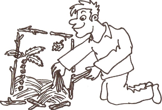 Zu einem bestimmten Thema sollen die Gruppen nun Bilder mit Naturmaterialien legen.