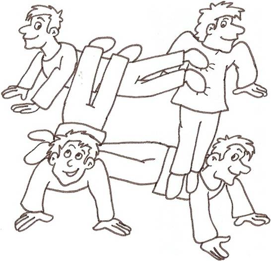 (Bei mehr als 4 Mitspielern fungieren die anderen als Berater oder "Stütze")