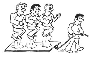 Schnell wird sich herausstellen, dass durch bloßes Ziehen kein Weiterkommen möglich ist. Nur wenn alle Mitspieler gleichzeitig springen, gibt es ein Weiterkommen.