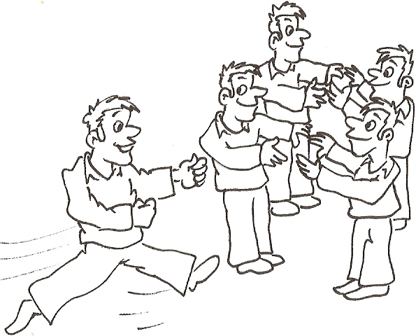 Die Mitspieler stellen sich in Zweierreihen gegenüber auf und strecken dabei ihre Hände in die Mitte (siehe Bild).
